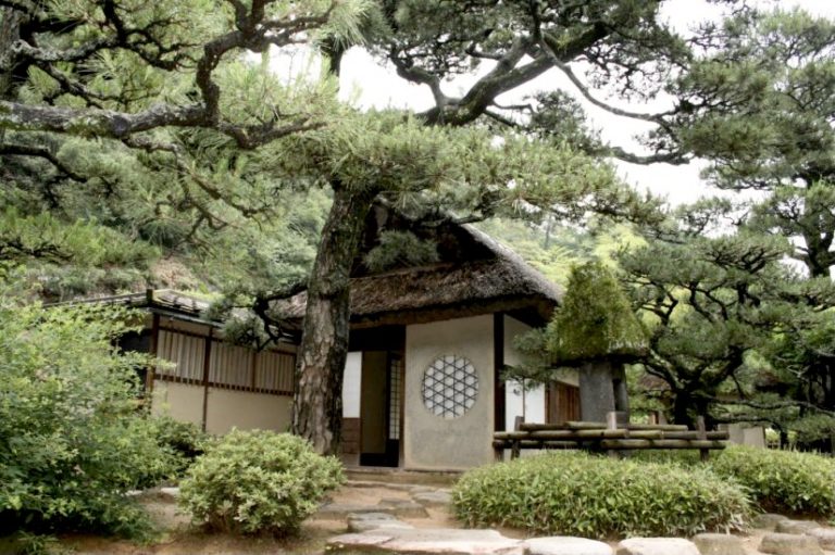 高松市の栗林公園 旧日暮亭。栗林公園に以前イノシシが出没し閉園したことがある。かつて隣接地に栗林動物園があった。瀬戸内海を泳ぐイノシシの映像!
