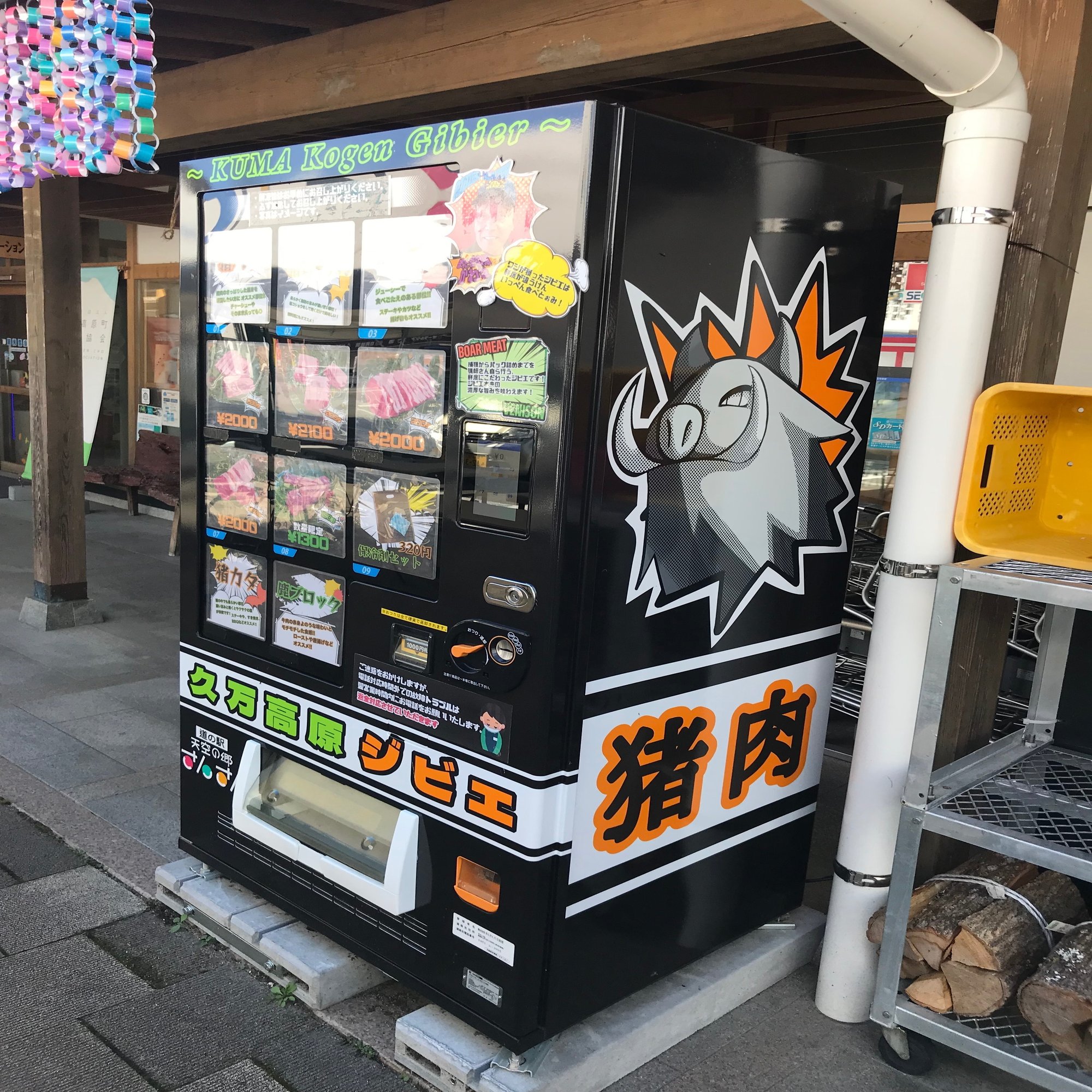 🔹ジビエの自動販売機。イノシシの肉を販売していた。久万高原・道の駅「天空の郷(さと)」